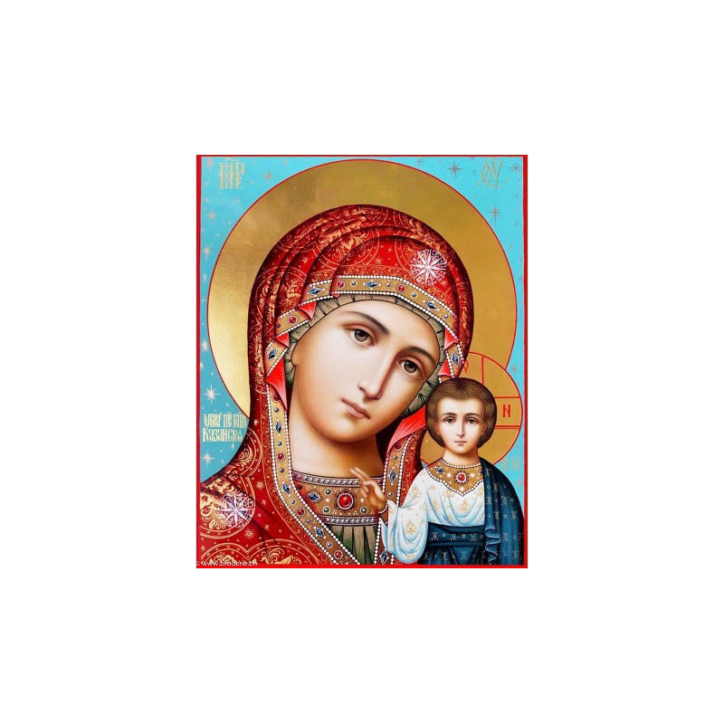 Wizardi, kit diamant Mother-of-God of Kazan (art. WIWD2559). Dimensions: 40 x 50 cm. Kit complet de Broderie Diamant comprenant la toile adhésive imprimée à recouvrir de strass, les sachets de strass 'diamants' triés par couleurs, un stylet et sa cire, un réceptacle et les explications. La totalité de la surface est à recouvrir. ATTENTION, ce n'est pas une broderie, pas de fil ni d'aiguille, mais une mosaïque.