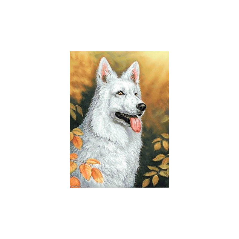 Wizardi, kit diamant White Dog (art. WIWD2678). Dimensions: 30 x 40 cm. Kit complet de Broderie Diamant comprenant la toile adhésive imprimée à recouvrir de strass, les sachets de strass 'diamants' triés par couleurs, un stylet et sa cire, un réceptacle et les explications. La totalité de la surface est à recouvrir. ATTENTION, ce n'est pas une broderie, pas de fil ni d'aiguille, mais une mosaïque.