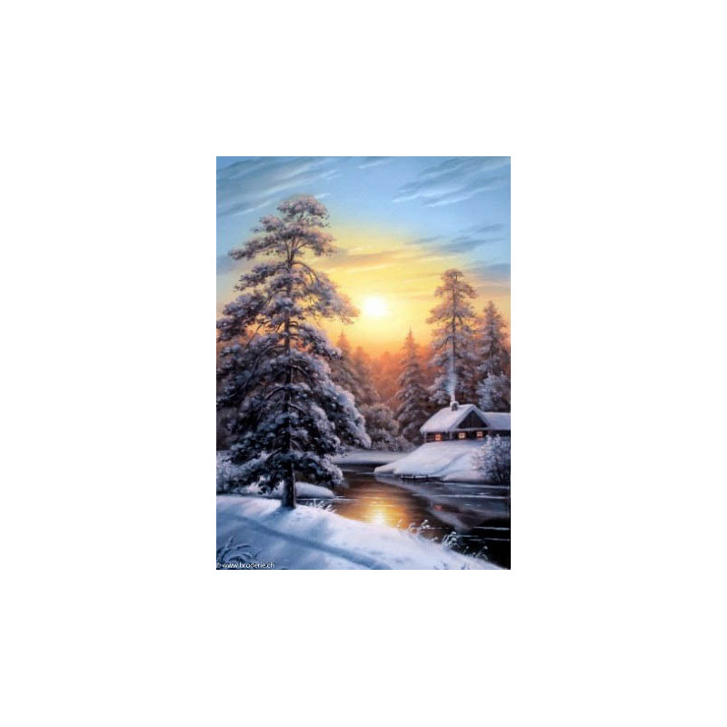 Wizardi, kit diamant Winter Sunrise (art. WIWD2611). Dimensions: 50 x 70 cm. Kit complet de Broderie Diamant comprenant la toile adhésive imprimée à recouvrir de strass, les sachets de strass 'diamants' triés par couleurs, un stylet et sa cire, un réceptacle et les explications. La totalité de la surface est à recouvrir. ATTENTION, ce n'est pas une broderie, pas de fil ni d'aiguille, mais une mosaïque.