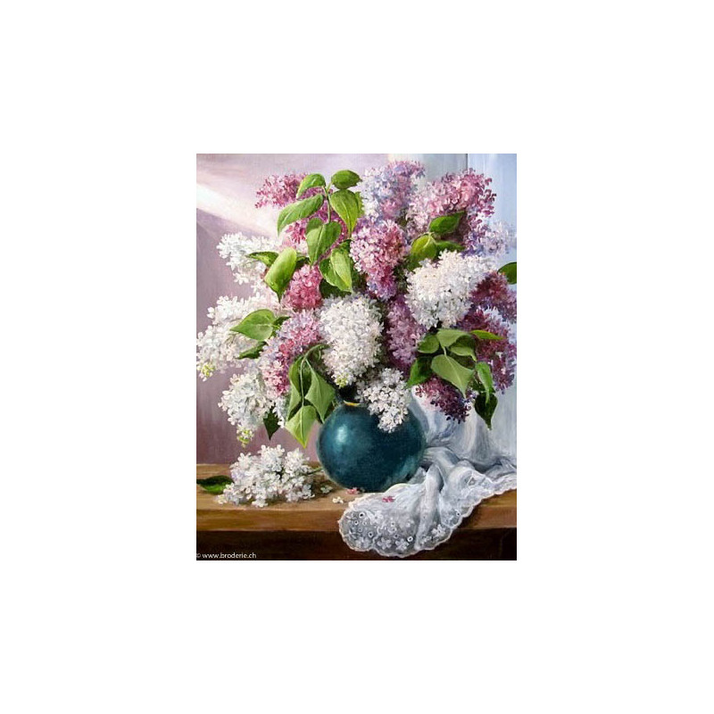 Wizardi, kit diamant Fresh lilac (art. WIWD2618). Dimensions: 40 x 50 cm. Kit complet de Broderie Diamant comprenant la toile adhésive imprimée à recouvrir de strass, les sachets de strass 'diamants' triés par couleurs, un stylet et sa cire, un réceptacle et les explications. La totalité de la surface est à recouvrir. ATTENTION, ce n'est pas une broderie, pas de fil ni d'aiguille, mais une mosaïque.