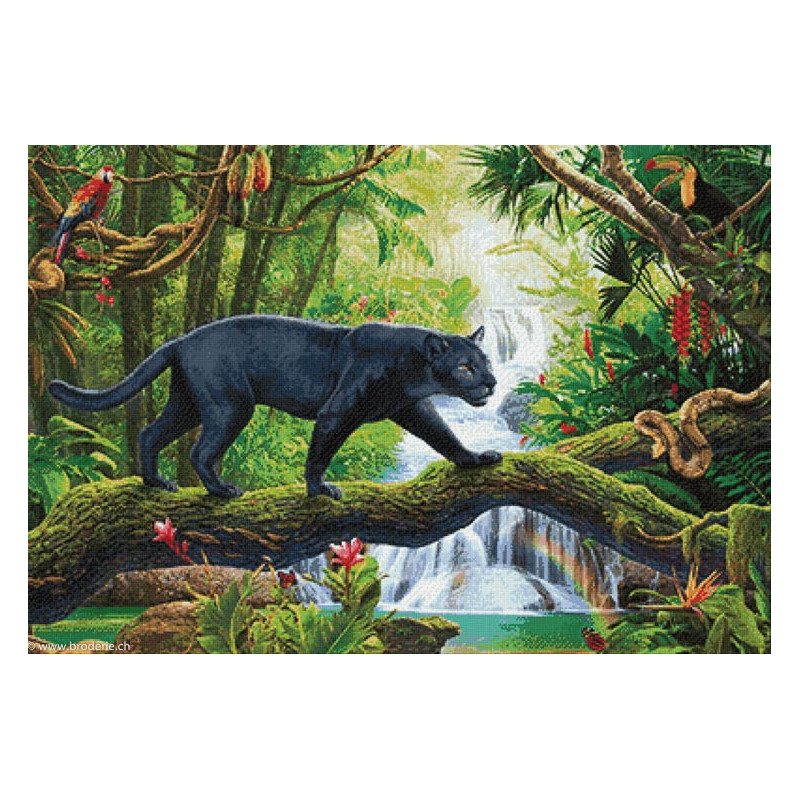 Wizardi, kit diamant Black Panther (art. WIWD2506). Dimensions: 100 x 68 cm. Kit complet de Broderie Diamant comprenant la toile adhésive imprimée à recouvrir de strass, les sachets de strass 'diamants' triés par couleurs, un stylet et sa cire, un réceptacle et les explications. La totalité de la surface est à recouvrir. ATTENTION, ce n'est pas une broderie, pas de fil ni d'aiguille, mais une mosaïque.