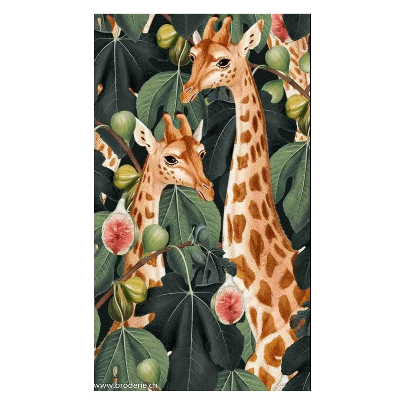 Wizardi, kit diamant Giraffes (art. WIWD3031). Dimensions: 40 x 70 cm. Kit complet de Broderie Diamant comprenant la toile adhésive imprimée à recouvrir de strass, les sachets de strass 'diamants' triés par couleurs, un stylet et sa cire, un réceptacle et les explications. La totalité de la surface est à recouvrir. ATTENTION, ce n'est pas une broderie, pas de fil ni d'aiguille, mais une mosaïque.