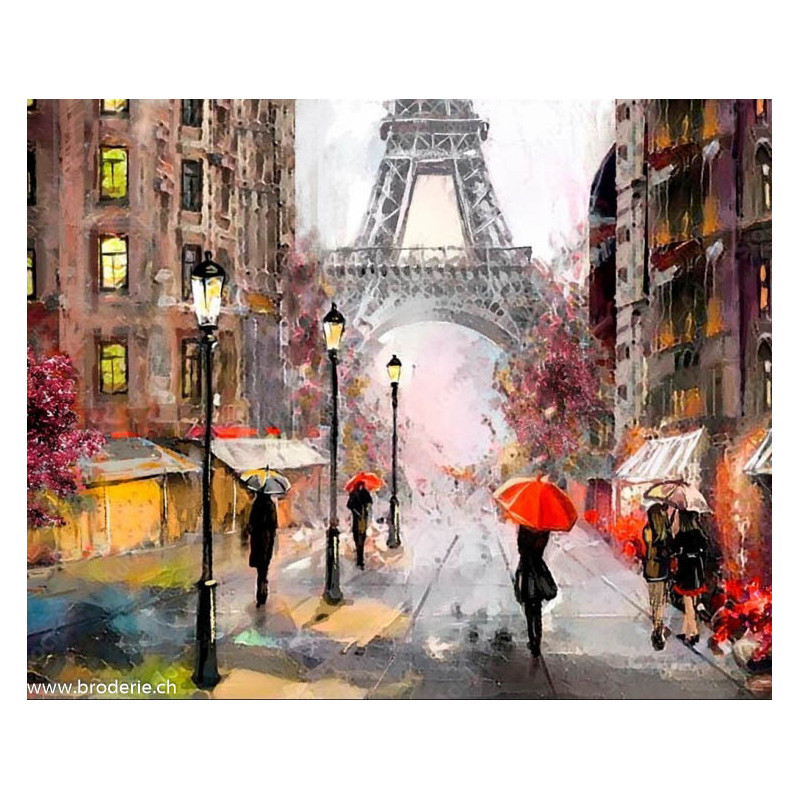 Wizardi, kit diamant Paris's sights (art. WIWD3034). Dimensions: 50 x 40 cm. Kit complet de Broderie Diamant comprenant la toile adhésive imprimée à recouvrir de strass, les sachets de strass 'diamants' triés par couleurs, un stylet et sa cire, un réceptacle et les explications. La totalité de la surface est à recouvrir. ATTENTION, ce n'est pas une broderie, pas de fil ni d'aiguille, mais une mosaïque.