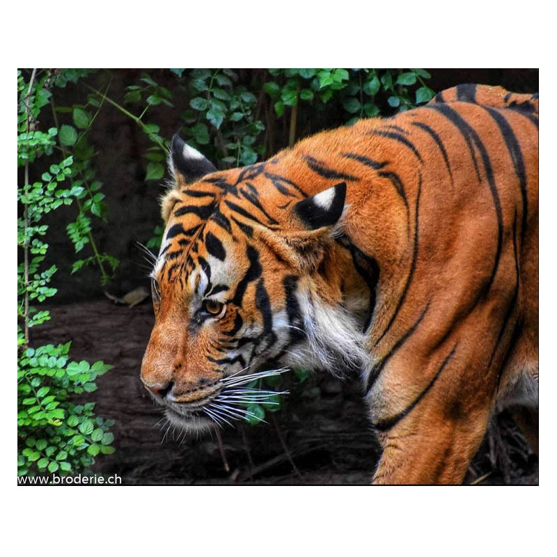 Wizardi, kit diamant Jungle king (art. WIWD3035). Dimensions: 50 x 40 cm. Kit complet de Broderie Diamant comprenant la toile adhésive imprimée à recouvrir de strass, les sachets de strass 'diamants' triés par couleurs, un stylet et sa cire, un réceptacle et les explications. La totalité de la surface est à recouvrir. ATTENTION, ce n'est pas une broderie, pas de fil ni d'aiguille, mais une mosaïque.
