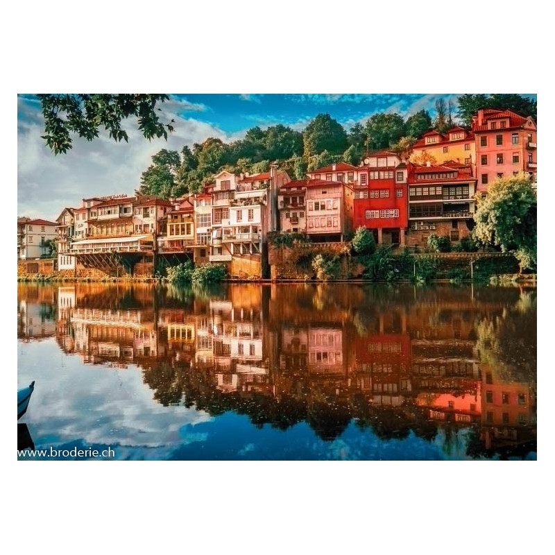 Wizardi, kit diamant Reflection (art. WIWD3059). Dimensions: 70 x 50 cm. Kit complet de Broderie Diamant comprenant la toile adhésive imprimée à recouvrir de strass, les sachets de strass 'diamants' triés par couleurs, un stylet et sa cire, un réceptacle et les explications. La totalité de la surface est à recouvrir. ATTENTION, ce n'est pas une broderie, pas de fil ni d'aiguille, mais une mosaïque.