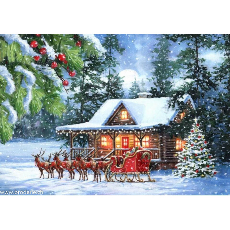 Collection d'Art, kit diamant Christmas tale (art. CADE7173). Dimensions: 38 x 27 cm. Kit comprenant la toile adhésive, les strass carrés emballés dans des sachets individuels et numérotés aux références des coloris de DMC, une pince, un stylo et sa colle, 2 réceptables et les explications.Toute la surface du tableau est à recouvrir de strass. ATTENTION: ce n'est pas une broderie, il n'y a ni fil ni aiguille, mais un collage comme une mosaïque.