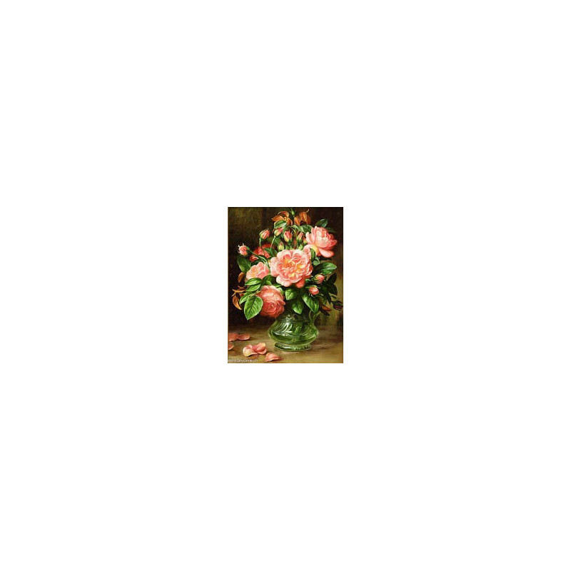 Artibalta, kit diamant Roses in a vase (art. AM-4047). Dimensions: 30 x 40 cm. Kit comprenant la toile adhésive, les strass carrés emballés dans des sachets individuels et numérotés aux références des coloris de DMC, une pince, un stylo et sa colle, 2 réceptables et les explications.Toute la surface du tableau est à recouvrir de strass. ATTENTION: ce n'est pas une broderie, il n'y a ni fil ni aiguille, mais un collage comme une mosaïque.