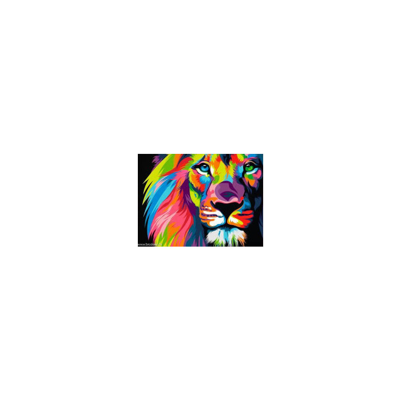 Artibalta, kit diamant Colorful Lion (art. AM-4006). Dimensions: 40 x 30 cm. Kit complet de Broderie Diamant comprenant la toile adhésive imprimée à recouvrir de strass, les sachets de strass 'diamants' triés par couleurs, un stylet et sa cire, un réceptacle et les explications. La totalité de la surface est à recouvrir. ATTENTION, ce n'est pas une broderie, pas de fil ni d'aiguille, mais une mosaïque.