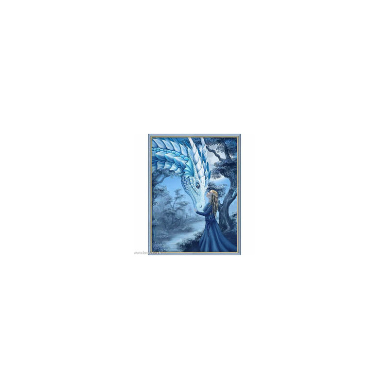 Artibalta, kit diamant The Girl and the Dragon (art. AM-1971). Dimensions: 30 x 40 cm. Kit complet de Broderie Diamant comprenant la toile adhésive imprimée à recouvrir de strass, les sachets de strass 'diamants' triés par couleurs, un stylet et sa cire, un réceptacle et les explications. La totalité de la surface est à recouvrir. ATTENTION, ce n'est pas une broderie, pas de fil ni d'aiguille, mais une mosaïque.