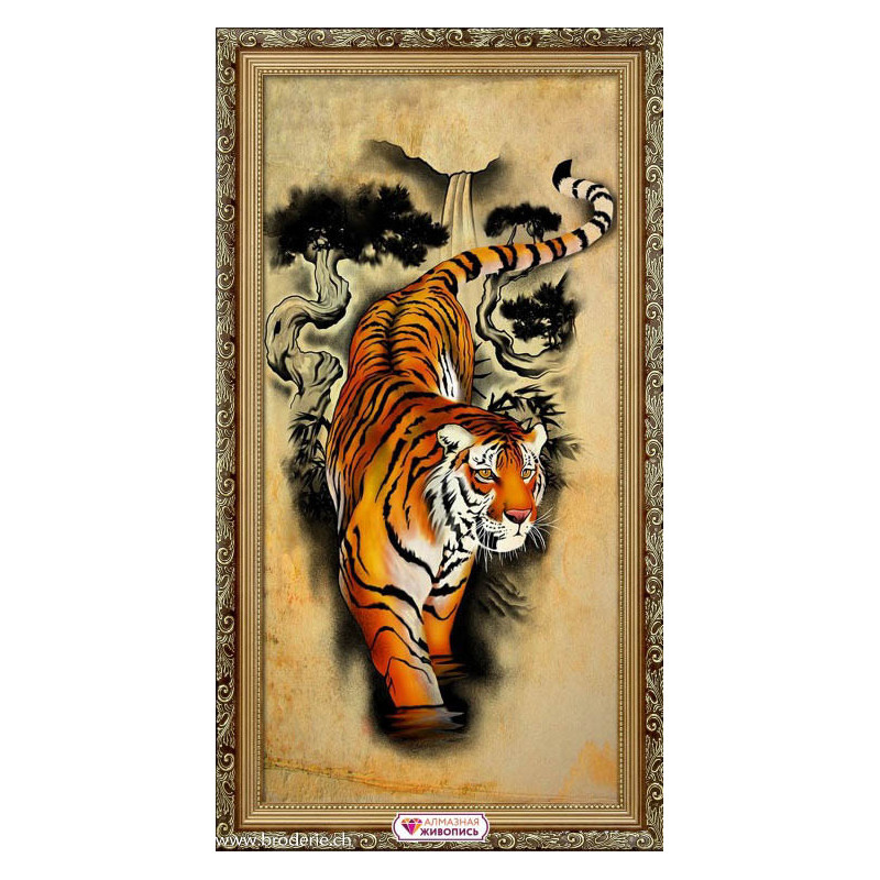 Artibalta, kit diamant Parchment with tigers (art. AZ-4124). Dimensions: 30 x 60 cm. Kit comprenant la toile adhésive, les strass carrés emballés dans des sachets individuels et numérotés aux références des coloris de DMC, une pince, un stylo et sa colle, 2 réceptables et les explications.Toute la surface du tableau est à recouvrir de strass. ATTENTION: ce n'est pas une broderie, il n'y a ni fil ni aiguille, mais un collage comme une mosaïque.
