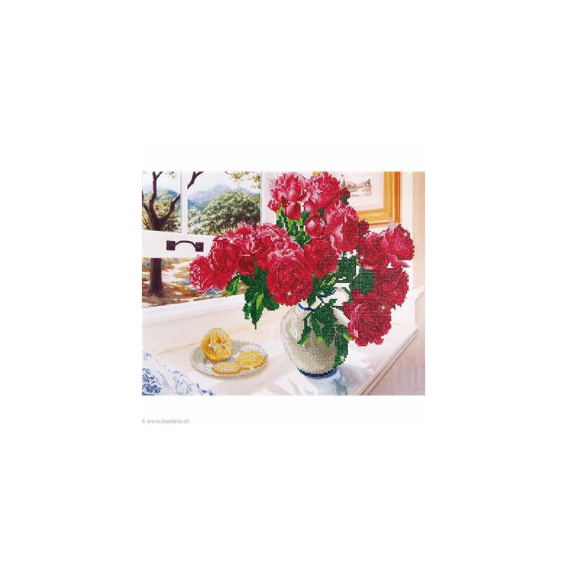 Diamond Dotz, kit diamant niveau 3- LES ROSES (art. DD12013). Dimensions: 57 x 49 cm. Kit Diamant comprenant la toile adhésive imprimée à recouvrir de strass, les sachets de strass 'diamants' ronds triés par couleurs, un stylet et sa cire, un réceptacle et les explications.La toile est partiellement peinte, et n'est pas entièrement couverte de strass, uniquement les motifs qui donnent un bel aspect de relief.ATTENTION, ce n'est pas une broderie, pas de fil ni d'aiguille, mais une mosaïque.