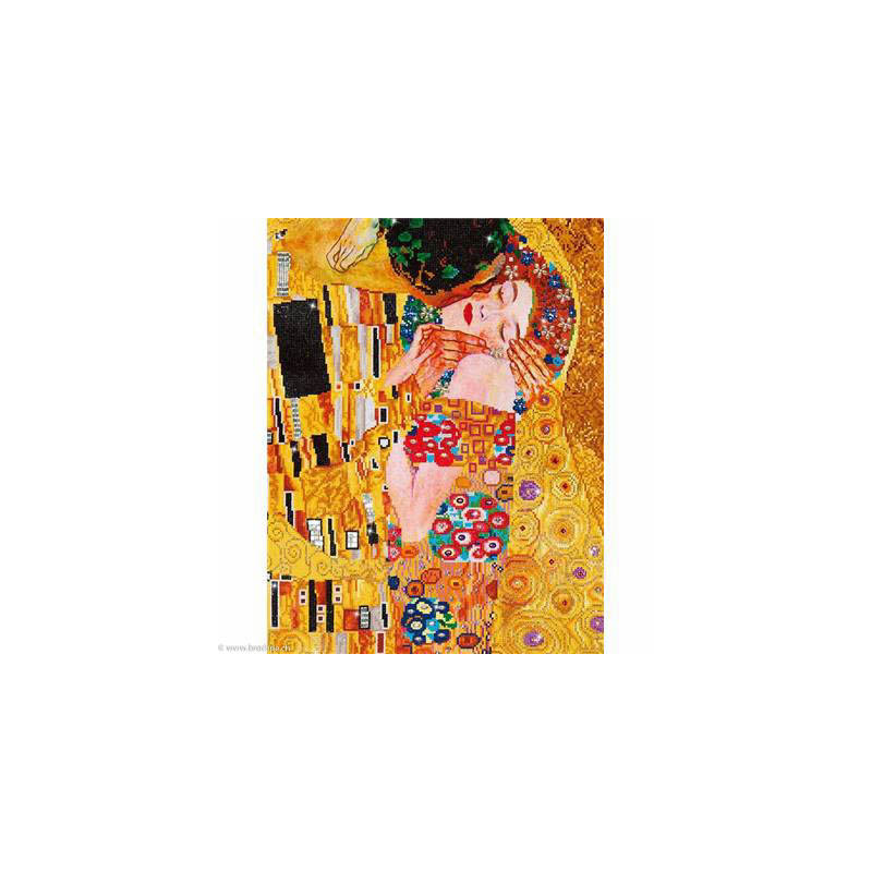 Diamond Dotz, kit diamant niveau 3- LE BAISER (art. DD13001). Dimensions: 68 x 47 cm. Kit Diamant comprenant la toile adhésive imprimée à recouvrir de strass, les sachets de strass 'diamants' ronds triés par couleurs, un stylet et sa cire, un réceptacle et les explications.La toile est partiellement peinte, et n'est pas entièrement couverte de strass, uniquement les motifs qui donnent un bel aspect de relief.ATTENTION, ce n'est pas une broderie, pas de fil ni d'aiguille, mais une mosaïque.