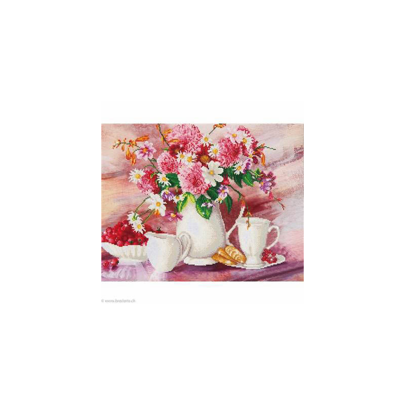 Diamond Dotz, kit diamant niveau 3- L'HEURE DU THE (art. DD13002). Dimensions: 72 x 66 cm. Kit Diamant comprenant la toile adhésive imprimée à recouvrir de strass, les sachets de strass 'diamants' ronds triés par couleurs, un stylet et sa cire, un réceptacle et les explications.La toile est partiellement peinte, et n'est pas entièrement couverte de strass, uniquement les motifs qui donnent un bel aspect de relief.ATTENTION, ce n'est pas une broderie, pas de fil ni d'aiguille, mais une mosaïque.