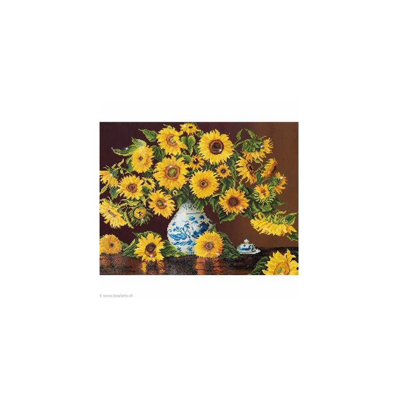 Diamond Dotz, kit diamant niveau 3- TOURNESOLS (art. DD13006). Dimensions: 71 x 56 cm. Kit Diamant comprenant la toile adhésive imprimée à recouvrir de strass, les sachets de strass 'diamants' ronds triés par couleurs, un stylet et sa cire, un réceptacle et les explications.La toile est partiellement peinte, et n'est pas entièrement couverte de strass, uniquement les motifs qui donnent un bel aspect de relief.ATTENTION, ce n'est pas une broderie, pas de fil ni d'aiguille, mais une mosaïque.
