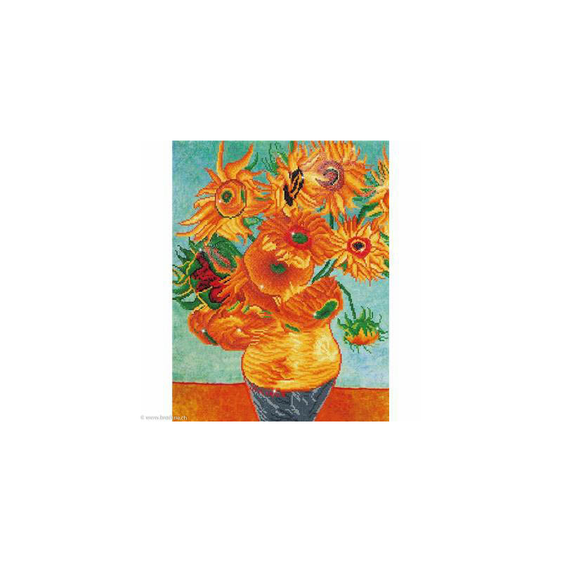 Diamond Dotz, kit diamant niveau 3- LES TOURNESOLS (art. DD13011). Dimensions: 56 x 71 cm. Kit Diamant comprenant la toile adhésive imprimée à recouvrir de strass, les sachets de strass 'diamants' ronds triés par couleurs, un stylet et sa cire, un réceptacle et les explications.La toile est partiellement peinte, et n'est pas entièrement couverte de strass, uniquement les motifs qui donnent un bel aspect de relief.ATTENTION, ce n'est pas une broderie, pas de fil ni d'aiguille, mais une mosaïque.