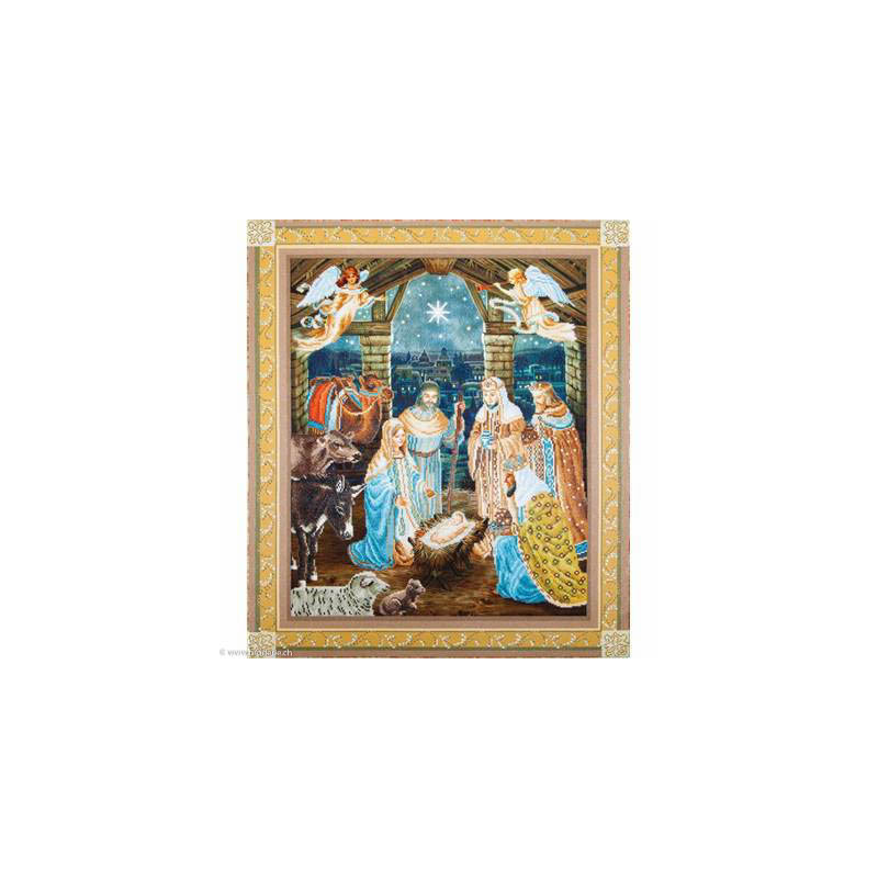 Diamond Dotz, kit diamant niveau 3- LA NATIVITE (art. DD15002). Dimensions: 85 x 100 cm. Kit complet de Broderie Diamant comprenant la toile adhésive imprimée à recouvrir de strass, les sachets de strass 'diamants' ronds triés par couleurs, un stylet et sa cire, un réceptacle et les explications.La toile est partiellement peinte, et n'est pas entièrement couverte de strass, uniquement les motifs qui donnent un bel aspect de relief.ATTENTION, ce n'est pas une broderie, pas de fil ni d'aiguille, mais une mosaïque.