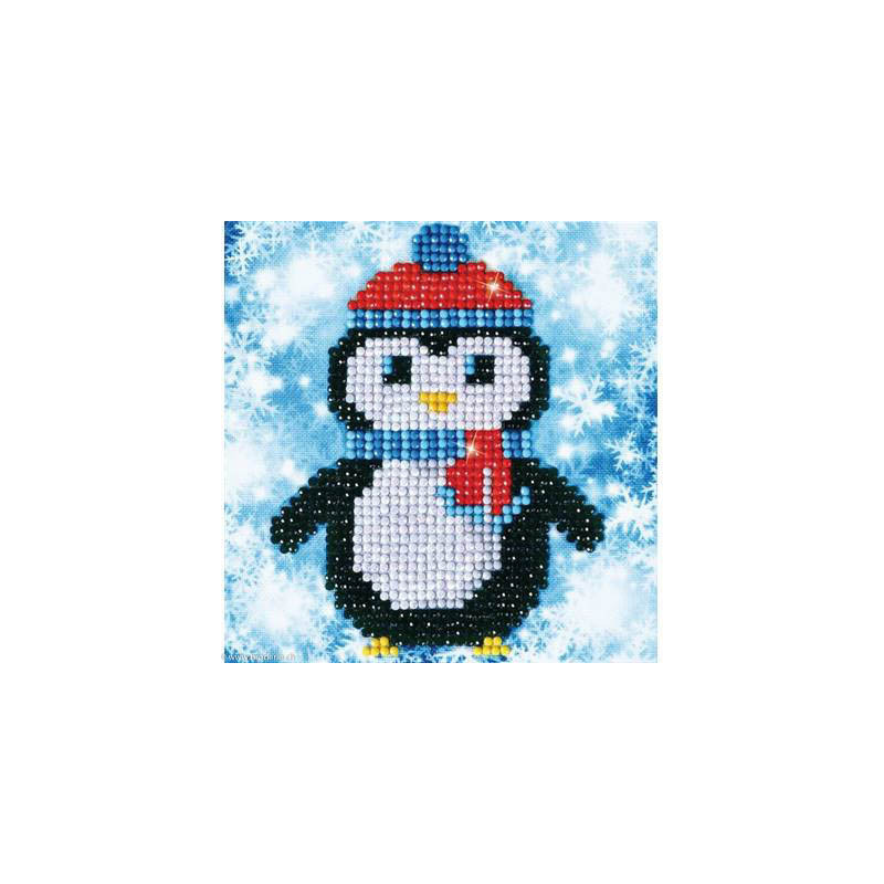 Diamond Dotz, kit diamant niveau 1 - LE PINGOUIN (art. DD2023). Dimensions: 13.5 x 13.5 cm. Kit complet de Broderie Diamant comprenant la toile adhésive imprimée à recouvrir de strass, les sachets de strass 'diamants' ronds triés par couleurs, un stylet et sa cire, un réceptacle et les explications.La toile est partiellement peinte, et n'est pas entièrement couverte de strass, uniquement les motifs qui donnent un bel aspect de relief.ATTENTION, ce n'est pas une broderie, pas de fil ni d'aiguille, mais une mosaïque.