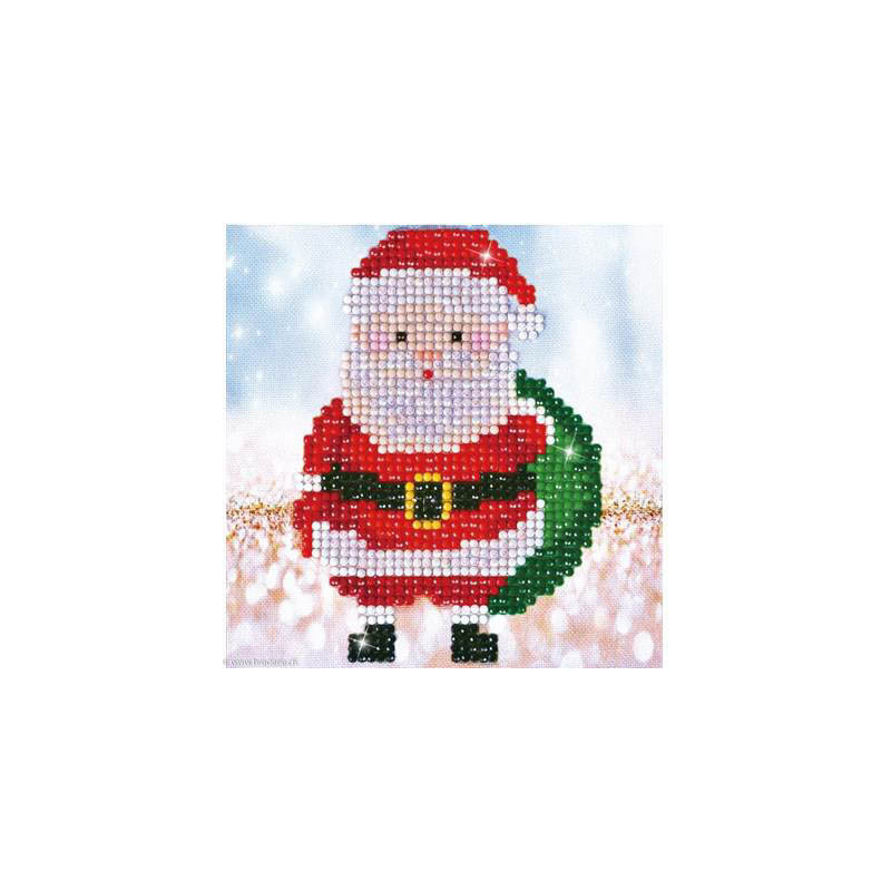 Diamond Dotz, kit diamant niveau 1 - LE PERE NOEL (art. DD2029). Dimensions: 13.5 x 13.5 cm. Kit complet de Broderie Diamant comprenant la toile adhésive imprimée à recouvrir de strass, les sachets de strass 'diamants' ronds triés par couleurs, un stylet et sa cire, un réceptacle et les explications.La toile est partiellement peinte, et n'est pas entièrement couverte de strass, uniquement les motifs qui donnent un bel aspect de relief.ATTENTION, ce n'est pas une broderie, pas de fil ni d'aiguille, mais une mosaïque.