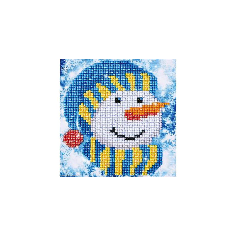 Diamond Dotz, kit diamant niveau 1 - BONHOMME DE NEIGE (art. DD2034). Dimensions: 13.5 x 13.5 cm. Kit complet de Broderie Diamant comprenant la toile adhésive imprimée à recouvrir de strass, les sachets de strass 'diamants' ronds triés par couleurs, un stylet et sa cire, un réceptacle et les explications.La toile est partiellement peinte, et n'est pas entièrement couverte de strass, uniquement les motifs qui donnent un bel aspect de relief.ATTENTION, ce n'est pas une broderie, pas de fil ni d'aiguille, mais une mosaïque.
