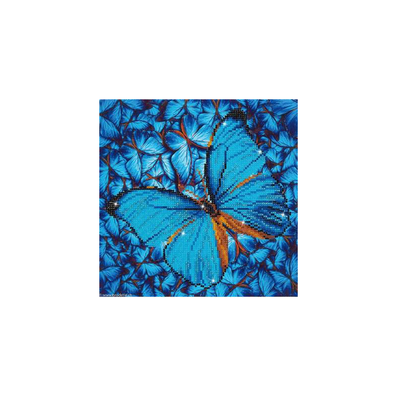 Diamond Dotz, kit diamant niveau 2- PAPILLON BLEU (art. DD5014). Dimensions: 30 x 30 cm. Kit Diamant comprenant la toile adhésive imprimée à recouvrir de strass, les sachets de strass 'diamants' ronds triés par couleurs, un stylet et sa cire, un réceptacle et les explications.La toile est partiellement peinte, et n'est pas entièrement couverte de strass, uniquement les motifs qui donnent un bel aspect de relief.ATTENTION, ce n'est pas une broderie, pas de fil ni d'aiguille, mais une mosaïque.
