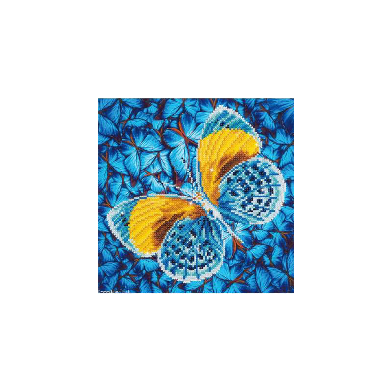 Diamond Dotz, kit diamant niveau 2 - PAPILLON DORE (art. DD5016). Dimensions: 30 x 30 cm. Kit Diamant comprenant la toile adhésive imprimée à recouvrir de strass, les sachets de strass 'diamants' ronds triés par couleurs, un stylet et sa cire, un réceptacle et les explications.La toile est partiellement peinte, et n'est pas entièrement couverte de strass, uniquement les motifs qui donnent un bel aspect de relief.ATTENTION, ce n'est pas une broderie, pas de fil ni d'aiguille, mais une mosaïque.