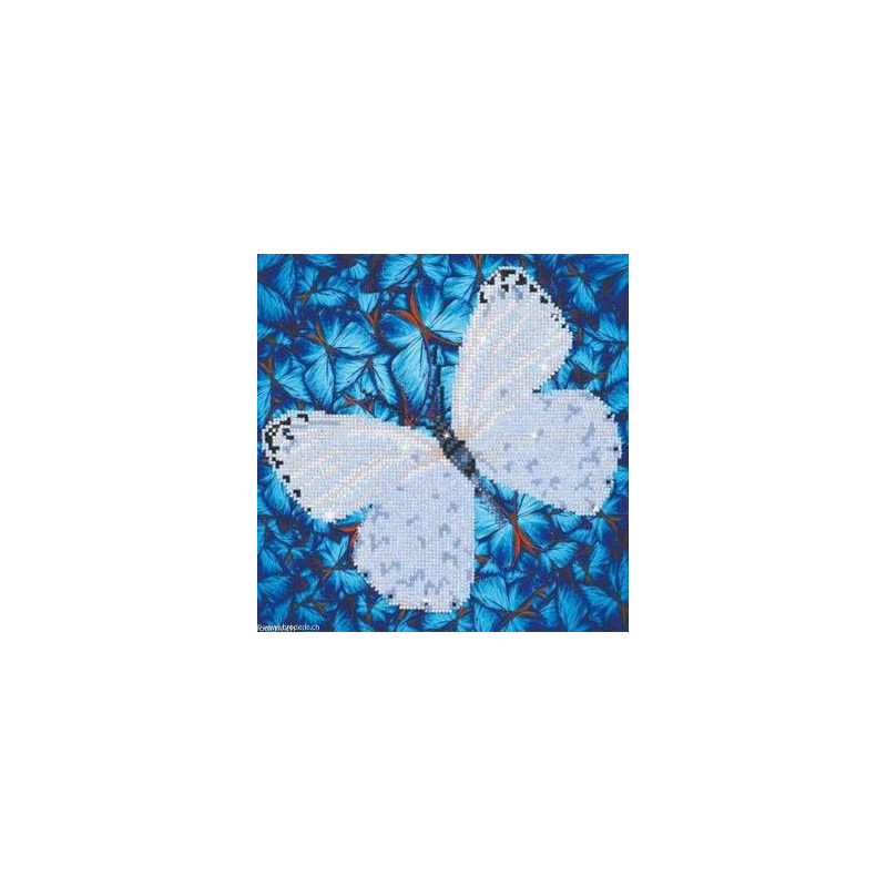 Diamond Dotz, kit diamant niveau 2- PAPILLON BLANC (art. DD5021). Dimensions: 30.5 x 30.5 cm. Kit Diamant comprenant la toile adhésive imprimée à recouvrir de strass, les sachets de strass 'diamants' ronds triés par couleurs, un stylet et sa cire, un réceptacle et les explications.La toile est partiellement peinte, et n'est pas entièrement couverte de strass, uniquement les motifs qui donnent un bel aspect de relief.ATTENTION, ce n'est pas une broderie, pas de fil ni d'aiguille, mais une mosaïque.