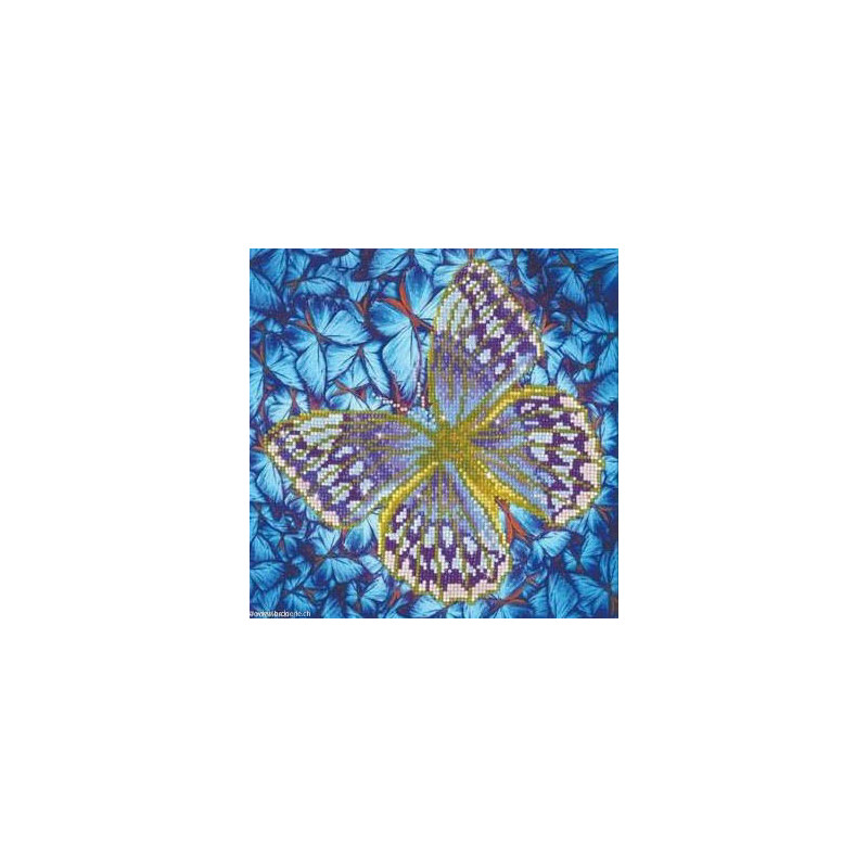 Diamond Dotz, kit diamant niveau 2- PAPILLON ARGENT (art. DD5023). Dimensions: 30.5 x 30.5 cm. Kit Diamant comprenant la toile adhésive imprimée à recouvrir de strass, les sachets de strass 'diamants' ronds triés par couleurs, un stylet et sa cire, un réceptacle et les explications.La toile est partiellement peinte, et n'est pas entièrement couverte de strass, uniquement les motifs qui donnent un bel aspect de relief.ATTENTION, ce n'est pas une broderie, pas de fil ni d'aiguille, mais une mosaïque.