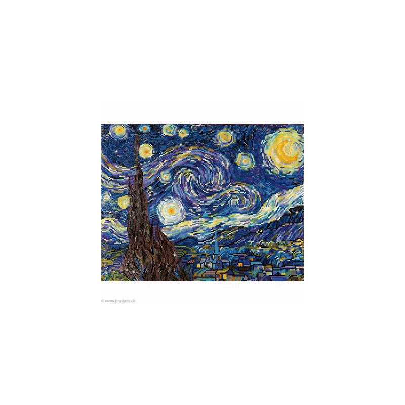 Diamond Dotz, kit diamant niveau 2- LA NUIT ETOILEE (art. DD9001). Dimensions: 50 x 40 cm. Kit Diamant comprenant la toile adhésive imprimée à recouvrir de strass, les sachets de strass 'diamants' ronds triés par couleurs, un stylet et sa cire, un réceptacle et les explications.La toile est entièrement couverte de strass.ATTENTION, ce n'est pas une broderie, pas de fil ni d'aiguille, mais une mosaïque.