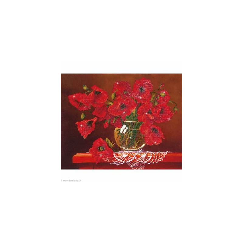 Diamond Dotz, kit diamant niveau 2- COQUELICOTS (art. DD9002). Dimensions: 50 x 40 cm. Kit Diamant comprenant la toile adhésive imprimée à recouvrir de strass, les sachets de strass 'diamants' ronds triés par couleurs, un stylet et sa cire, un réceptacle et les explications.La toile est partiellement peinte, et n'est pas entièrement couverte de strass, uniquement les motifs qui donnent un bel aspect de relief.ATTENTION, ce n'est pas une broderie, pas de fil ni d'aiguille, mais une mosaïque.