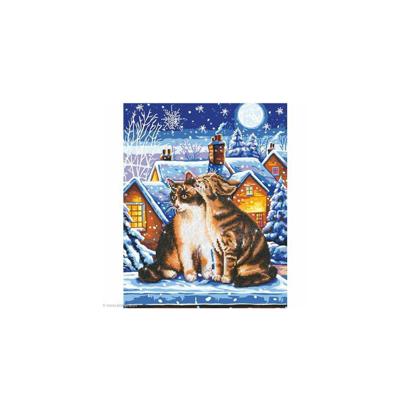 Diamond Dotz, kit diamant niveau 2- CHATS EN HIVER (art. DD9012). Dimensions: 50 x 40 cm. Kit Diamant comprenant la toile adhésive imprimée à recouvrir de strass, les sachets de strass 'diamants' ronds triés par couleurs, un stylet et sa cire, un réceptacle et les explications.La toile est partiellement peinte, et n'est pas entièrement couverte de strass, uniquement les motifs qui donnent un bel aspect de relief.ATTENTION, ce n'est pas une broderie, pas de fil ni d'aiguille, mais une mosaïque.