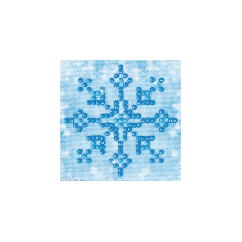Diamond Dotz, kit diamant niveau 1- ETOILE DES NEIGES (art. DDS017). Dimensions: 7 x 7 cm. Kit complet de Broderie Diamant comprenant la toile adhésive imprimée à recouvrir de strass, les sachets de strass 'diamants' ronds triés par couleurs, un stylet et sa cire, un réceptacle et les explications.La toile est partiellement peinte, et n'est pas entièrement couverte de strass, uniquement les motifs qui donnent un bel aspect de relief.ATTENTION, ce n'est pas une broderie, pas de fil ni d'aiguille, mais une mosaïque.