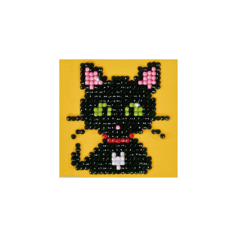 Diamond Dotz, kit diamant niveau 1- LE PETIT CHAT (art. DDS019). Dimensions: 7 x 7 cm. Kit complet de Broderie Diamant comprenant la toile adhésive imprimée à recouvrir de strass, les sachets de strass 'diamants' ronds triés par couleurs, un stylet et sa cire, un réceptacle et les explications.La toile est partiellement peinte, et n'est pas entièrement couverte de strass, uniquement les motifs qui donnent un bel aspect de relief.ATTENTION, ce n'est pas une broderie, pas de fil ni d'aiguille, mais une mosaïque.