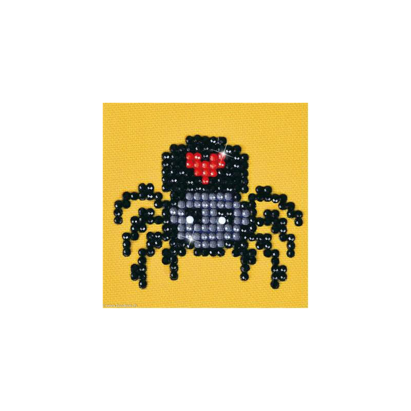 Diamond Dotz, kit diamant niveau 1- ARAIGNEE DU SOIR ESPOIR (art. DDS023). Dimensions: 7 x 7 cm. Kit complet de Broderie Diamant comprenant la toile adhésive imprimée à recouvrir de strass, les sachets de strass 'diamants' ronds triés par couleurs, un stylet et sa cire, un réceptacle et les explications.La toile est partiellement peinte, et n'est pas entièrement couverte de strass, uniquement les motifs qui donnent un bel aspect de relief.ATTENTION, ce n'est pas une broderie, pas de fil ni d'aiguille, mais une mosaïque.