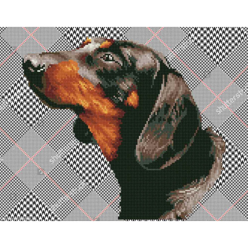 Diamond Dotz, kit diamant niveau 2 Noble Daschsie (art. DD7033). Dimensions: 47 x 37 cm. Kit complet de Broderie Diamant comprenant la toile adhésive imprimée à recouvrir de strass, les sachets de strass 'diamants' ronds triés par couleurs, un stylet et sa cire, un réceptacle et les explications.La toile est partiellement peinte, et n'est pas entièrement couverte de strass, uniquement les motifs qui donnent un bel aspect de relief.ATTENTION, ce n'est pas une broderie, pas de fil ni d'aiguille, mais une mosaïque.