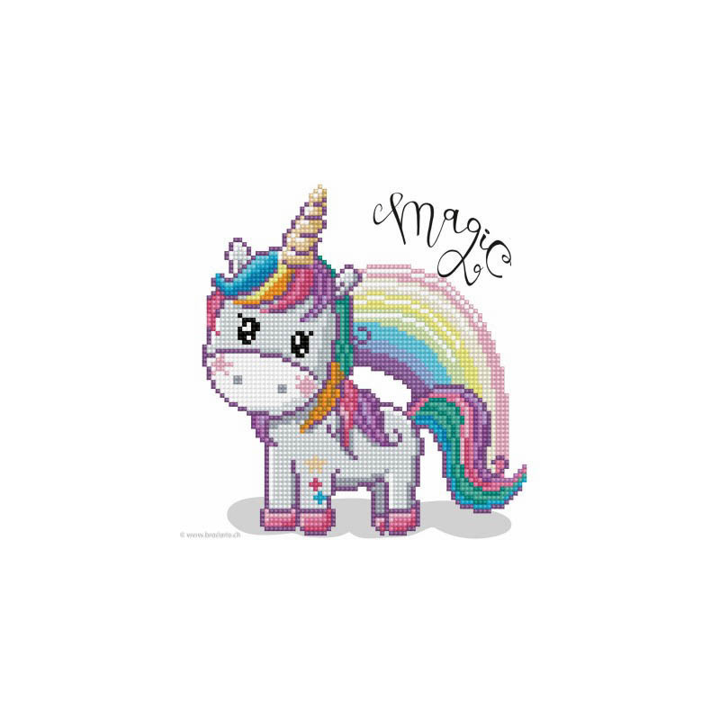 Diamond Dotz, kit diamant niveau 1 Magic Rainbow (art. DD3033). Dimensions: 20 x 20 cm. Kit Diamant comprenant la toile adhésive imprimée à recouvrir de strass, les sachets de strass 'diamants' ronds triés par couleurs, un stylet et sa cire, un réceptacle et les explications.La toile est partiellement peinte, et n'est pas entièrement couverte de strass, uniquement les motifs qui donnent un bel aspect de relief.ATTENTION, ce n'est pas une broderie, pas de fil ni d'aiguille, mais une mosaïque.