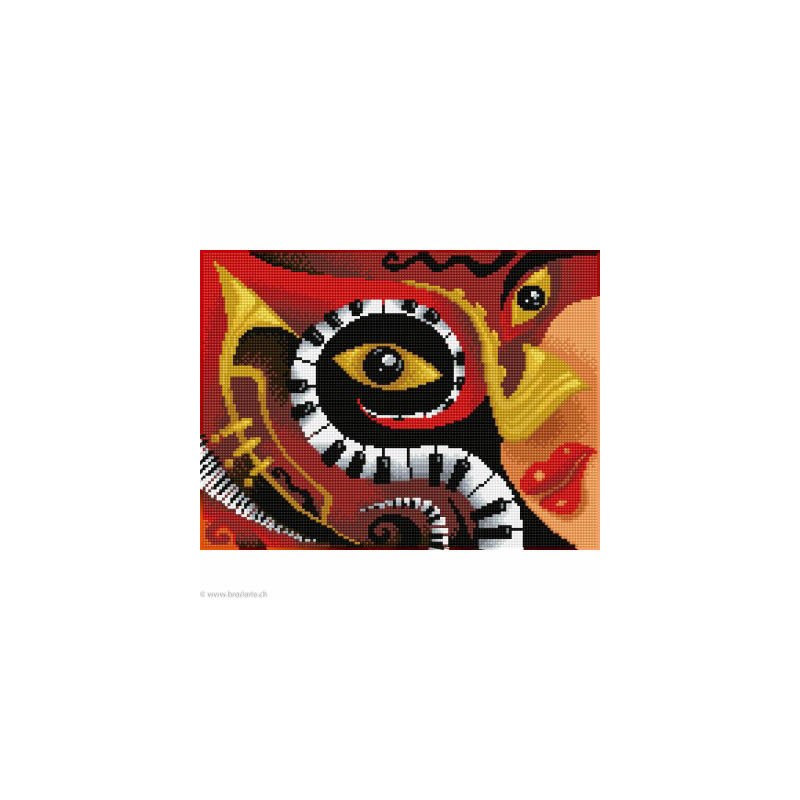 Diamond Dotz, kit diamant niveau 2 Jazz Bar (art. DD7050). Dimensions: 41 x 31 cm. Kit Diamant comprenant la toile adhésive imprimée à recouvrir de strass, les sachets de strass 'diamants' ronds triés par couleurs, un stylet et sa cire, un réceptacle et les explications.La toile est entièrement recouverte de strass.ATTENTION, ce n'est pas une broderie, pas de fil ni d'aiguille, mais une mosaïque.