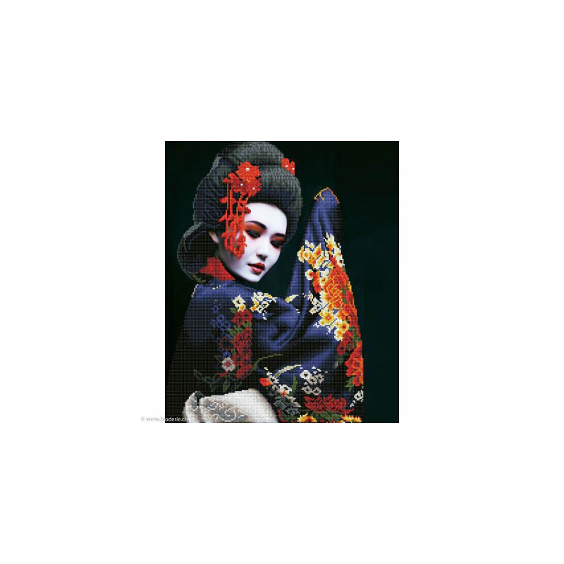 Diamond Dotz, kit diamant niveau 2 Kyoto Beauty (art. DD10043). Dimensions: 50 x 60 cm. Kit Diamant comprenant la toile adhésive imprimée à recouvrir de strass, les sachets de strass 'diamants' ronds triés par couleurs, un stylet et sa cire, un réceptacle et les explications.La toile est partiellement peinte, et n'est pas entièrement couverte de strass, uniquement les motifs qui donnent un bel aspect de relief.ATTENTION, ce n'est pas une broderie, pas de fil ni d'aiguille, mais une mosaïque.