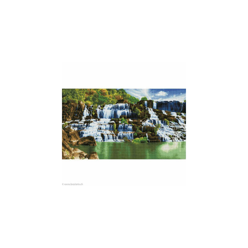Diamond Dotz, kit diamant niveau 3- Pongour Waterfall (art. DD14004). Dimensions: 101 x 57 cm. Kit Diamant comprenant la toile adhésive imprimée à recouvrir de strass, les sachets de strass 'diamants' ronds triés par couleurs, un stylet et sa cire, un réceptacle et les explications.La toile est entièrement recouverte de strass. ATTENTION, ce n'est pas une broderie, pas de fil ni d'aiguille, mais une mosaïque.