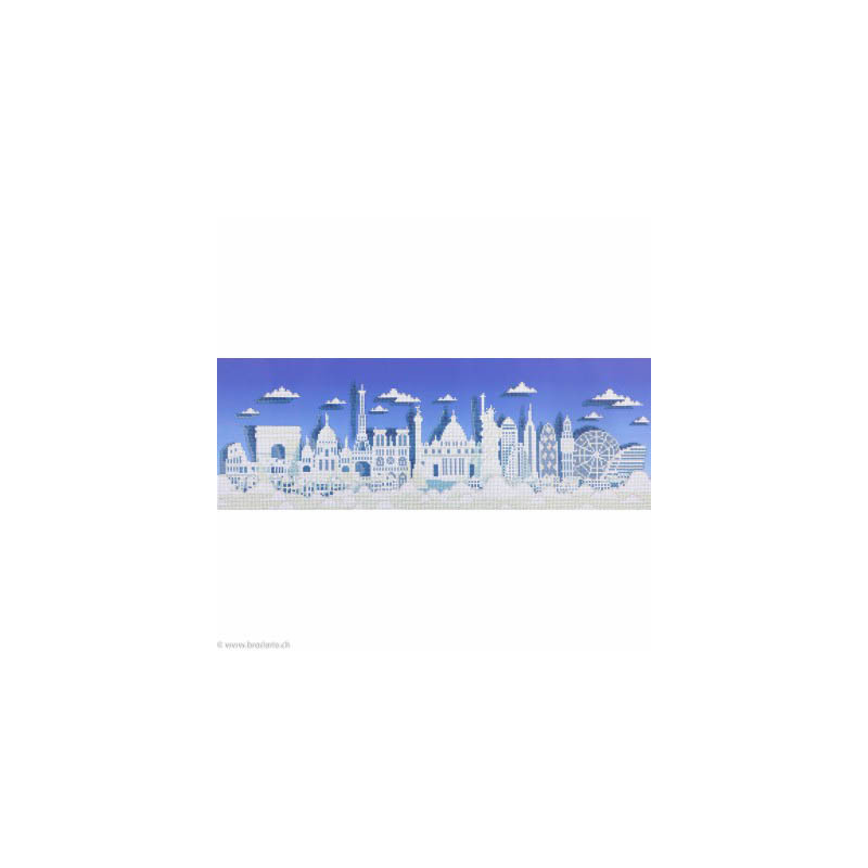 Diamond Dotz, kit diamant niveau 2 Sparkle the World (art. DD9066). Dimensions: 81 x 28 cm. Kit Diamant comprenant la toile adhésive imprimée à recouvrir de strass, les sachets de strass 'diamants' ronds triés par couleurs, un stylet et sa cire, un réceptacle et les explications.La toile est partiellement peinte, et n'est pas entièrement couverte de strass, uniquement les motifs qui donnent un bel aspect de relief.ATTENTION, ce n'est pas une broderie, pas de fil ni d'aiguille, mais une mosaïque.