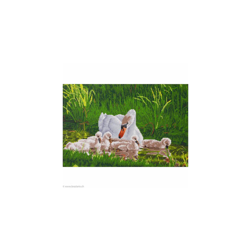 Diamond Dotz, kit diamant niveau 2 Mother Swan & Signets (art. DD12058). Dimensions: 62 x 41 cm. Kit Diamant comprenant la toile adhésive imprimée à recouvrir de strass, les sachets de strass 'diamants' ronds triés par couleurs, un stylet et sa cire, un réceptacle et les explications.La toile est entièrement recouverte de strass.ATTENTION, ce n'est pas une broderie, pas de fil ni d'aiguille, mais une mosaïque.