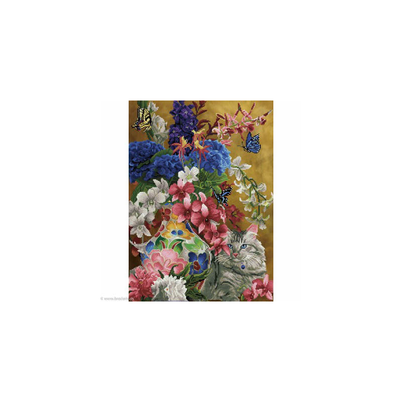 Diamond Dotz, kit diamant niveau 3 Gilded Cat & Flowers (art. DD13030). Dimensions: 52 x 72 cm. Kit Diamant comprenant la toile adhésive imprimée à recouvrir de strass, les sachets de strass 'diamants' ronds triés par couleurs, un stylet et sa cire, un réceptacle et les explications.La toile est partiellement peinte, et n'est pas entièrement couverte de strass, uniquement les motifs qui donnent un bel aspect de relief.ATTENTION, ce n'est pas une broderie, pas de fil ni d'aiguille, mais une mosaïque.