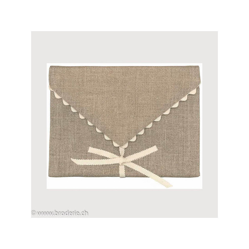 Bonheur des Dames, petit nécessaire coloris ficelle (art. BDEC3). Dimensions: 16 x 11 cm. Lin 12 fils/cm, fourni avec feutrine et ruban, s'ouvre en trois partie, pour y mettre de petits articles de couture.