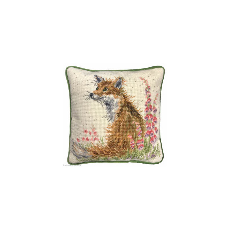 Bothy Threads, kit canevas peint Amongs the Foxgloves (art. BOTHD8). Dimensions: 35 x 35 cm. Créations de Hannah Dale, canevas imprimé avec laine Anchor, dos de coussin non fournis, dans la même série THD et numéro, 4.5 points/cm.