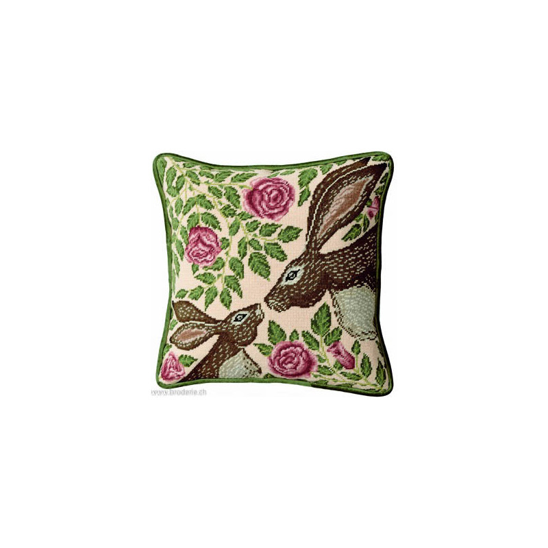 Bothy Threads, kit canevas peint English Roses (art. BOTAP10). Dimensions: 36 x 36 cm. Demi points sur canevas peint de 4 ou 5 points/cm, avec laines Anchor. dans la même série BOTAP et numéro. Modèle de Catherine Rowe.