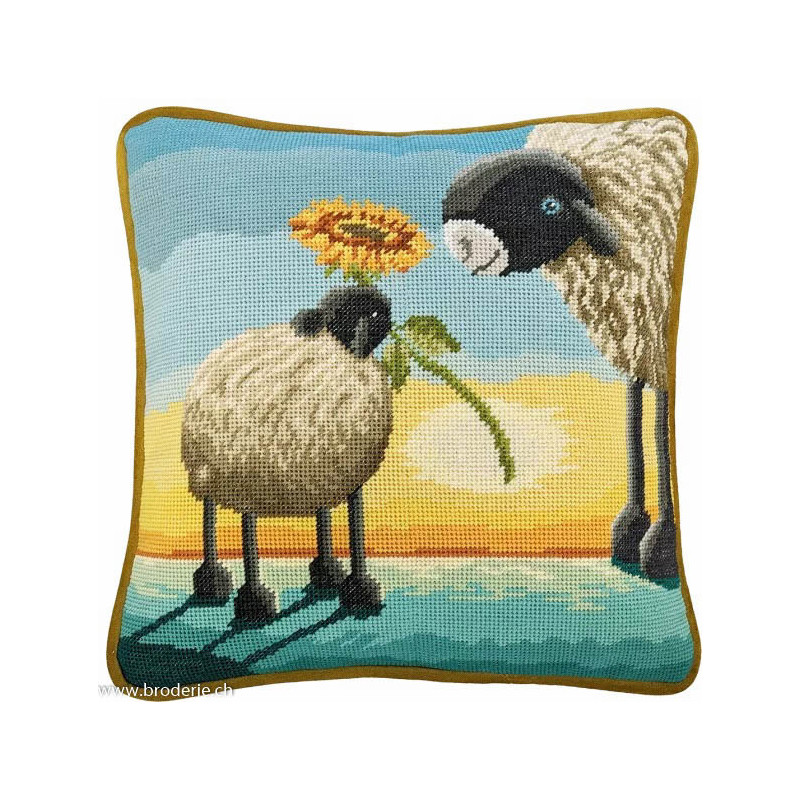 Bothy Threads, kit canevas peint Just Because (art. BOTPY2). Dimensions: 35 x 35 cm. Demi points sur canevas peint de 4 ou 5 points/cm, avec laines Anchor. dans la même série BOTAP et numéro. Modèle de Lucy Pittaway.
