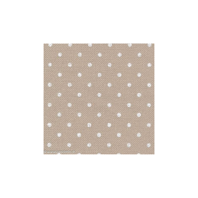 Zweigart, Etamine Murano 12,6 fils/cm taupe points blancs (art. 3984-7309). Largeur: 140 cm. Etamine 12.6 fils/cm, lavable en machine à 60°C, 52% coton 45% modal. Prix pour 10 cm, minimum à commander: 50 cm (indiquez 5 comme quantité pour 50 cm, 6 pour 60 cm, etc...).