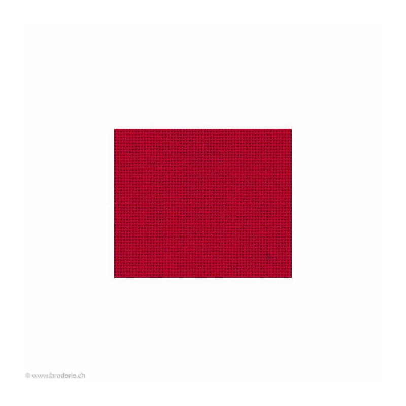 Zweigart, étamine Linda rouge en 140cm (art. 1235-954). Largeur: 140 cm. Etamine 100% coton 10.7 fils/cm, teinte correspondant au coton DMC 321, jusqu'à épuisement du stock. Prix pour 10 cm, minimum à commander: 50 cm (indiquez 5 comme quantité pour 50 cm, 6 pour 60 cm, etc...).