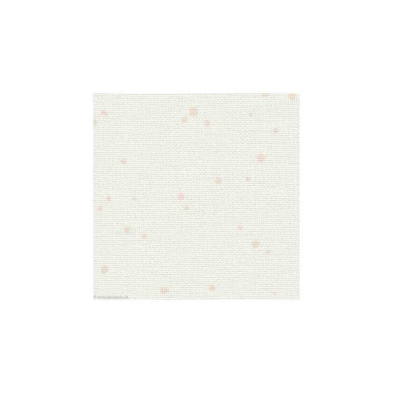 Zweigart, Etamine Murano 12,6 fils/cm splash blanc cassé avec taches roses (art. 3984-1319). Largeur: 140 cm. Etamine 12.6 fils/cm, lavable en machine à 60°C, 52%coton 45%modal, coloris petits points correspondant env. au DMC 818. Prix pour 10 cm, minimum à commander: 50 cm (indiquez 5 comme quantité pour 50 cm, 6 pour 60 cm, etc...).