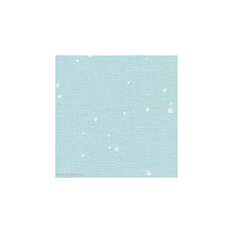 Zweigart, Etamine Murano 12,6 fils/cm splash turquoises, taches blanches (art. 3984-5429). Largeur: 140 cm. Etamine 12.6 fils/cm, lavable en machine à 60°C, 52%coton 45%modal, coton DMC correspondant 3811. Prix pour 10 cm, minimum à commander: 50 cm (indiquez 5 comme quantité pour 50 cm, 6 pour 60 cm, etc...).
