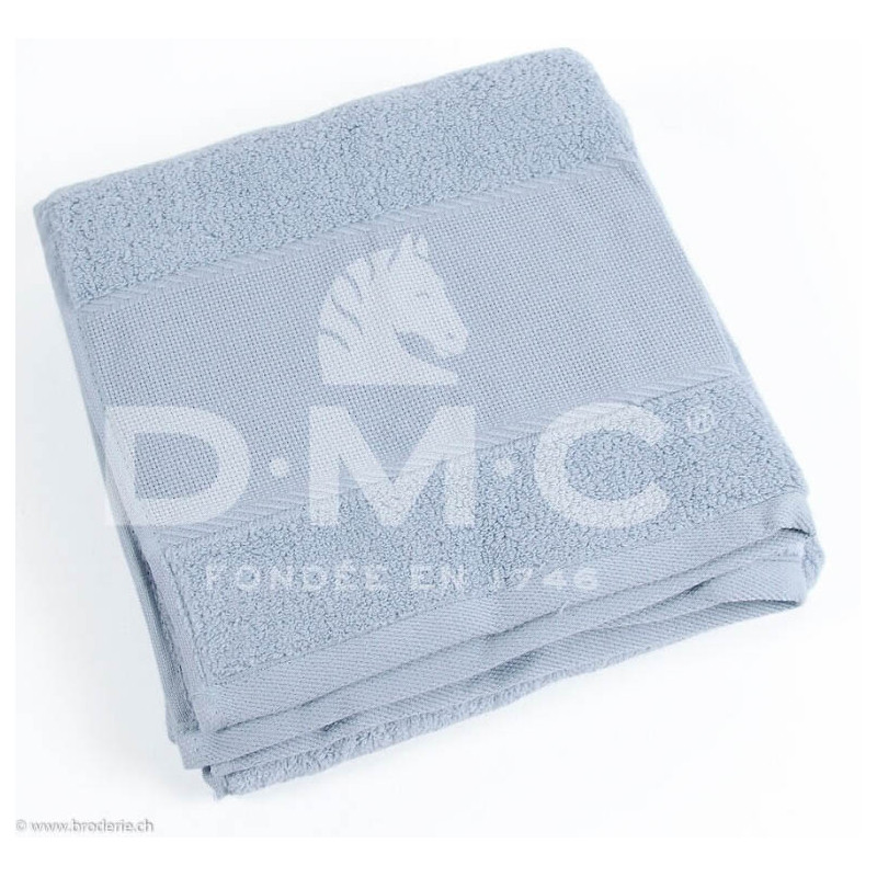 DMC, Linge éponge 50x100 cm Bleu nuage (art. CL084B-137). Dimensions: 50 x 100 cm. Linge 100% coton, avec une bande aïda à broder de 52 points de haut en 6 points/cm sur toute la larguer, DMC correspondant au 159 env.